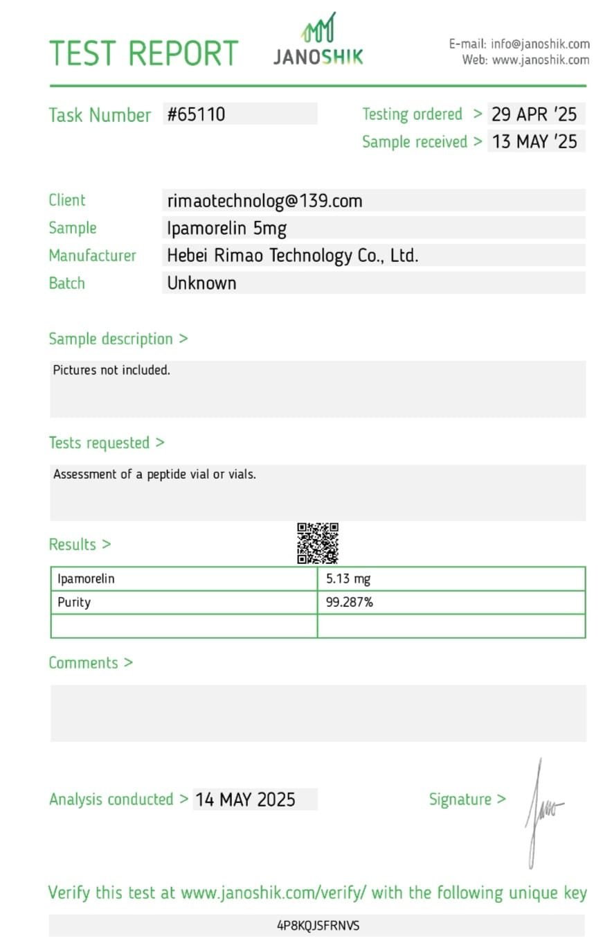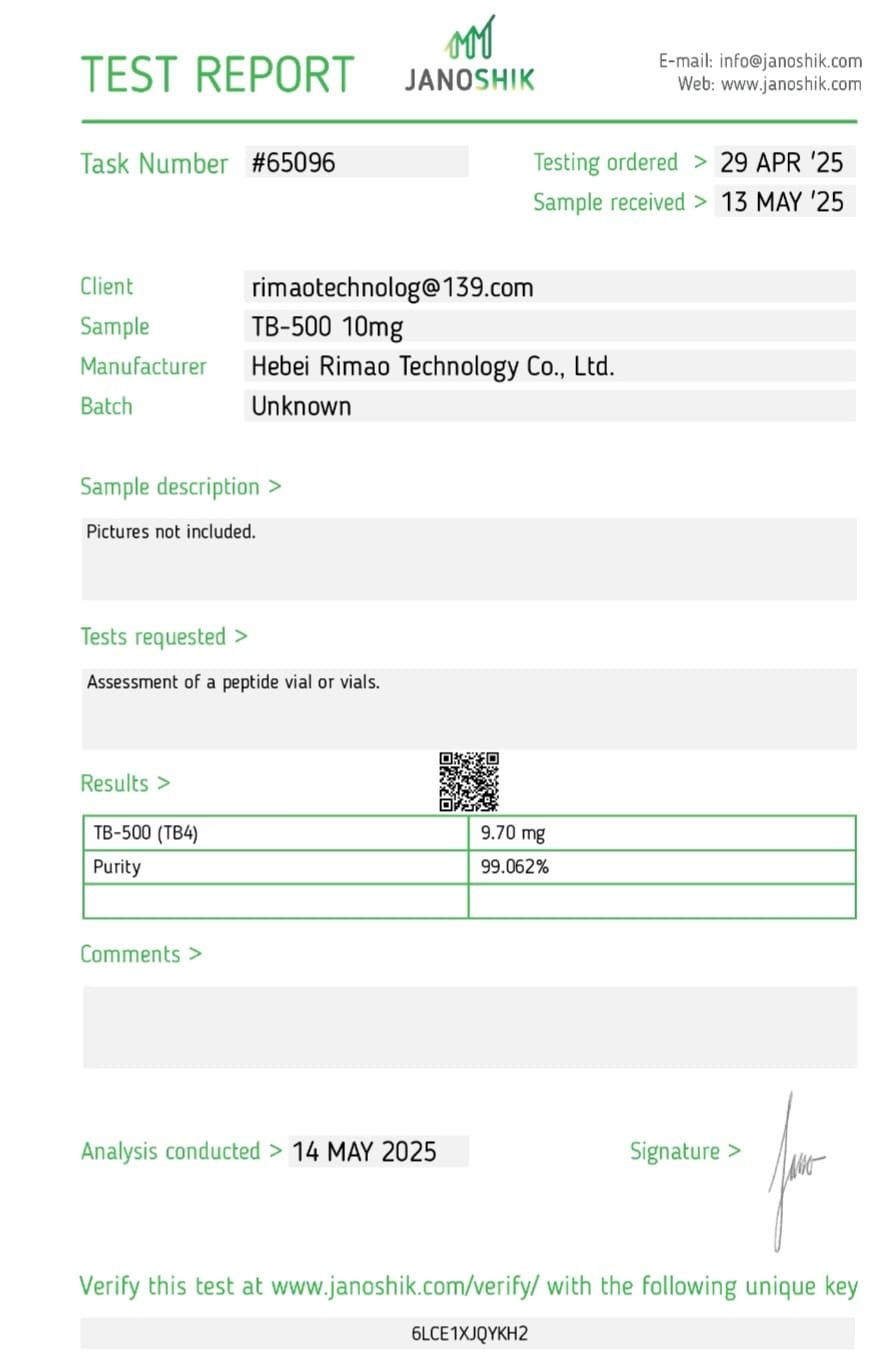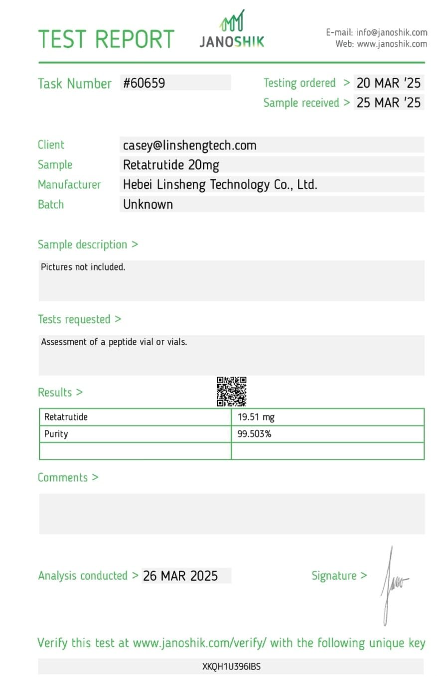 Consumers can independently verify the authenticity of our products by referencing the details provided on the certificates. This transparency not only bolsters confidence in our offerings but also underscores our commitment to delivering safe and effective peptides to our customers.
