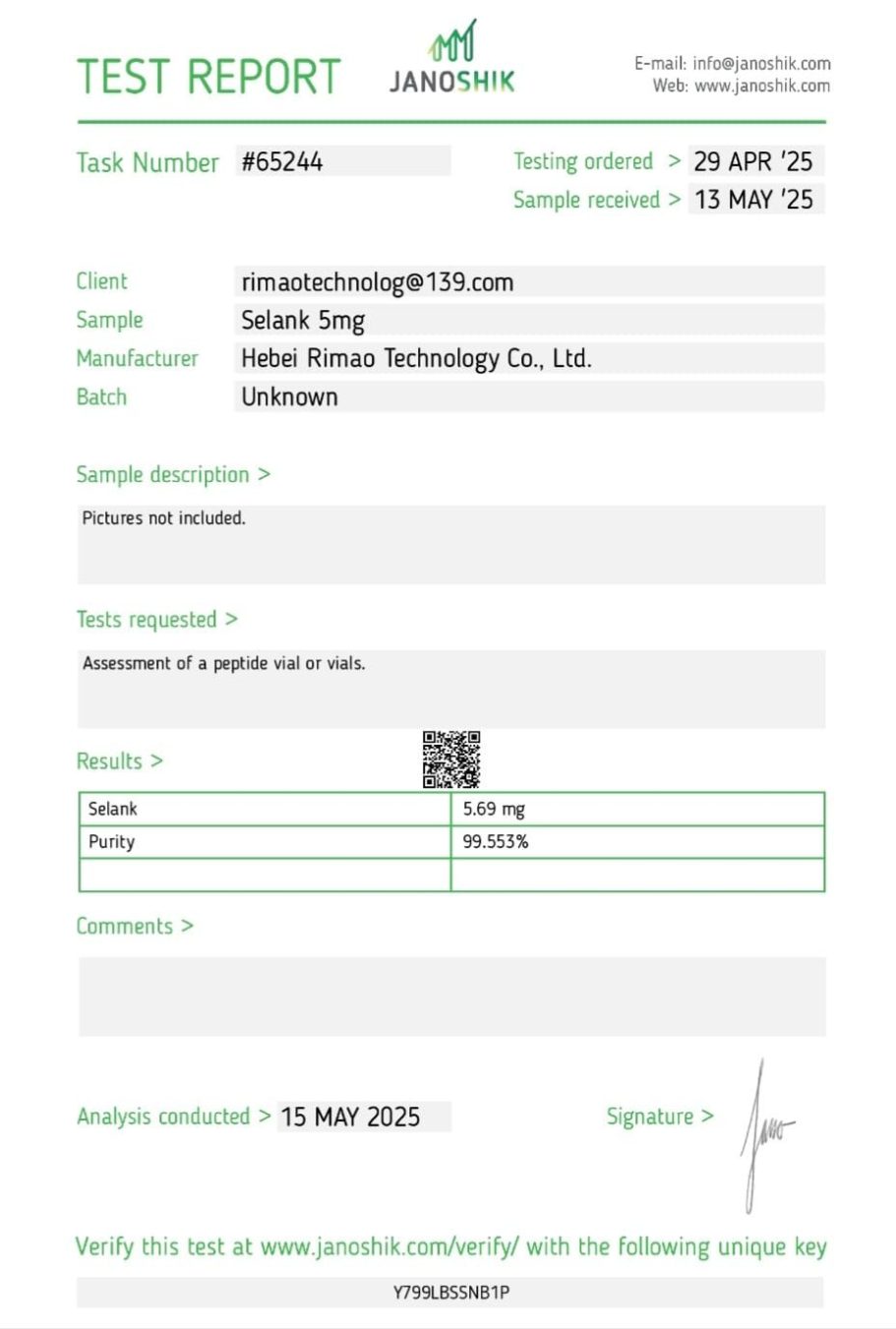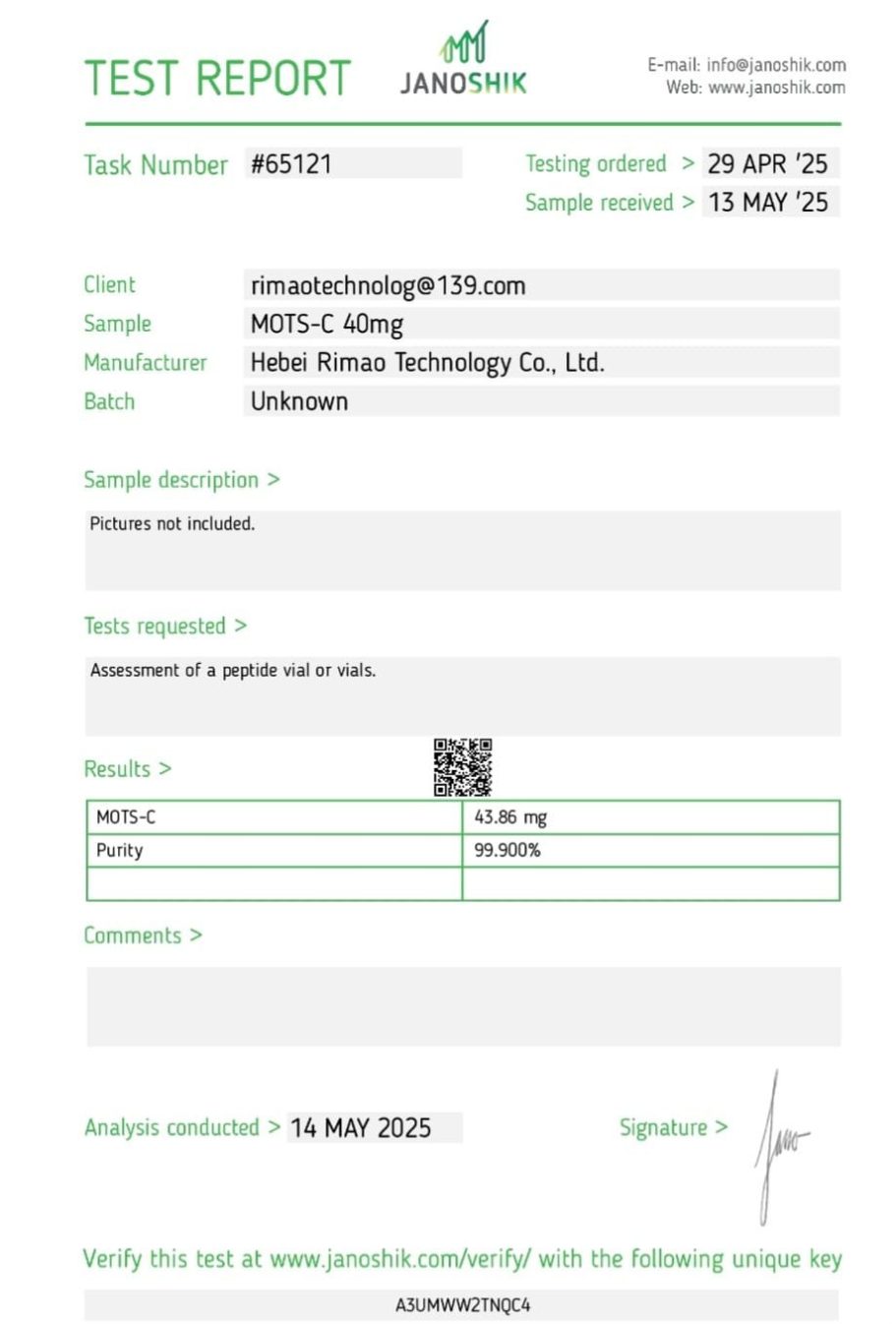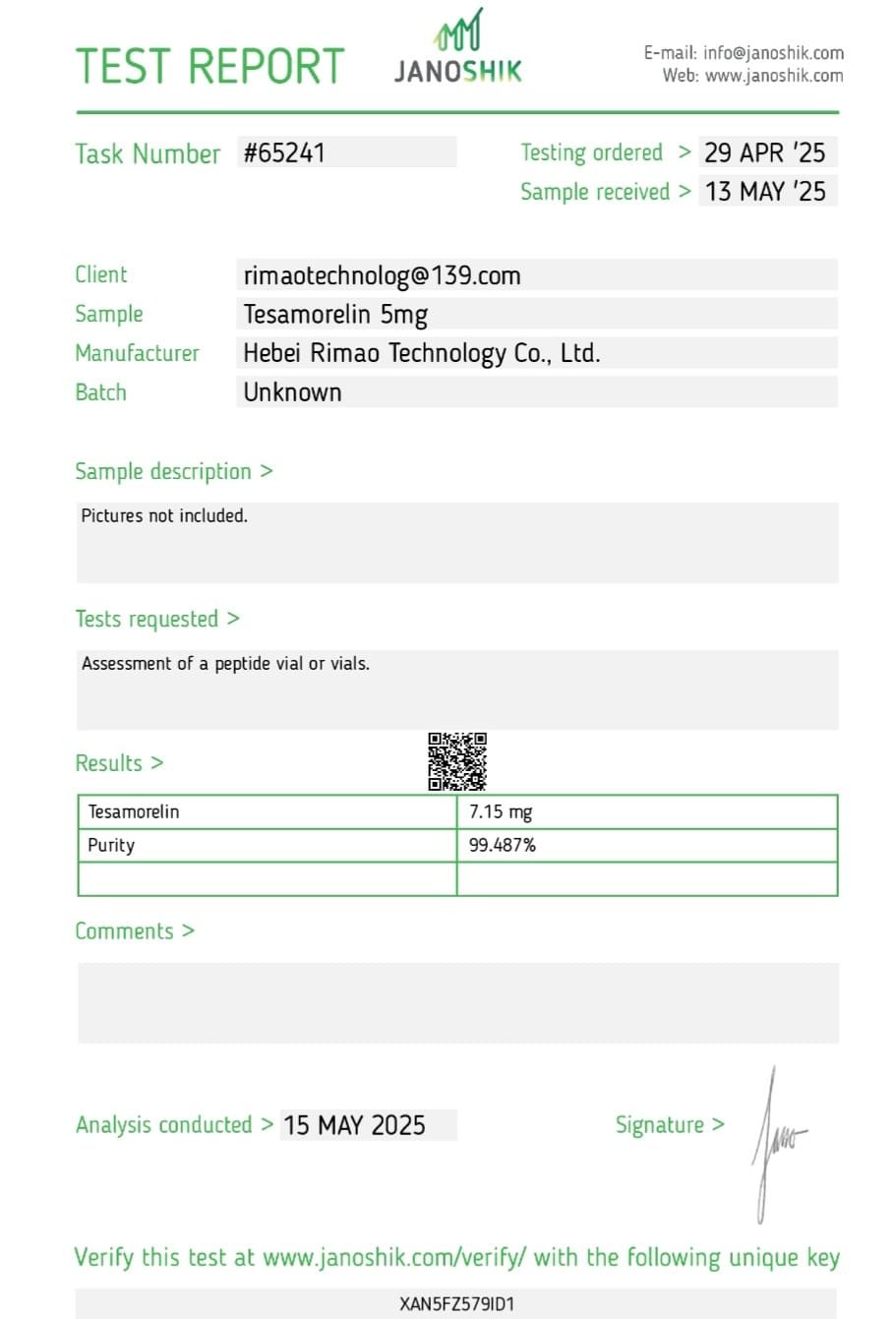 Consumers can independently verify the authenticity of our products by referencing the details provided on the certificates. This transparency not only bolsters confidence in our offerings but also underscores our commitment to delivering safe and effective peptides to our customers.